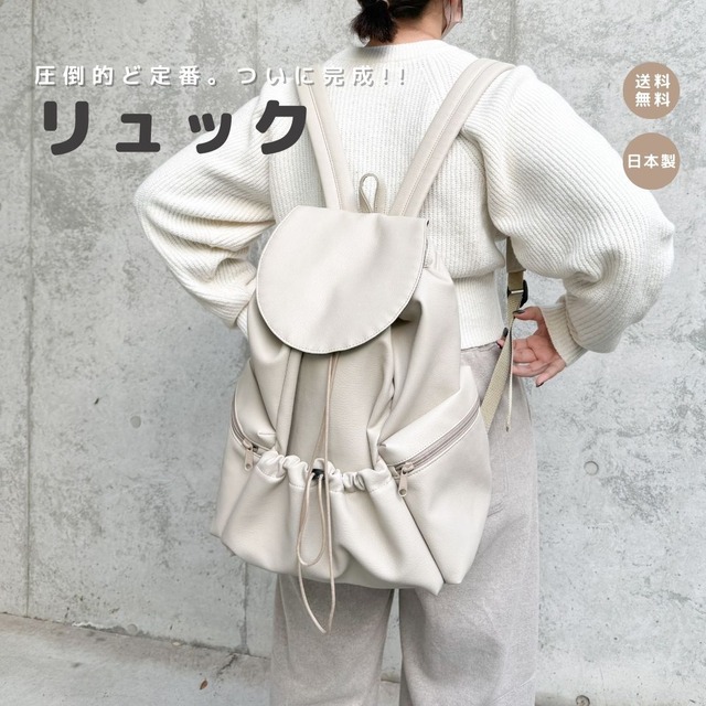 ▶商品情報 ※こちらはサンドベージュのみのページとなっております 大人のきちんと感と、日常の使いやすさを両立。 毎日背負いたくなる、上品カジュアルなリュック。 ふんわりとやわらかいシルエットに、ほんのりモードな巾着デザイン。 きれいめコーデにも自然になじむ、大人のためのカジュアルリュックです。 外側には、スマホや鍵などを“すぐに取り出せる”便利なファスナーポケット付き。 内側にもポケットがあり、整理整頓しやすい設計に。 A4サイズも入るメイン収納は、見た目以上の大容量。 お出かけグッズやママの必需品がすっきり収まり、毎日の外出がもっと快適 ✔ 保育園や幼稚園の送迎に ✔ 公園やお買い物などの普段使いに ✔ 雨の日や旅行のサブバッグとしても活躍 ✔ シンプルコーデのアクセントに◎ ✔ 両手があいて便利 made in Japanの上質なエコレザーを使用しております。 車のシートにも採用されている高品質なフェイクレザーになりますので、 傷つきにくく、耐水性があるため雨の日もご安心いただけます。 また、裏地には傘の生地を使っているため撥水性がございます。 アルコール除菌が可能なため、汚れも簡単に落とすことができ、いつも清潔にお使いいただけます。 ▶サイズ 約 縦40cm × 横29cm × マチ17cm 仕様:メイン収納×1、内ポケット×1、外ポケット×3 ※すべて手作りの為、若干の誤差が生じる場合があります<br> ▶素材:合成皮革 ▶発送 当店は全品受注生産の為、商品お届けまで2週間前後頂いております。 お急ぎの場合はお問い合わせ頂ければご希望に添える場合があります。 在庫のあるものは即日発送させていただきます。 ▶返品・交換 初期不良以外のお客さまの都合でのご返品は、一切お受けできかねますので、十分ご確認の上、ご購入をお願いいたします。 廃棄される生地をアップサイクルしていることとハンドメイドということを十分ご理解いただきご購入ください。配送中についたシワや凹みもご返品の対象外となります。万が一不備があった場合は商品到着後8日以内にご連絡くだされば事実確認の上で至急対応させていただきます。また、お客さまのご都合による交換等の際には、往復の送料と事務手数料のご負担をお願いしております。あらかじめご了承ください。