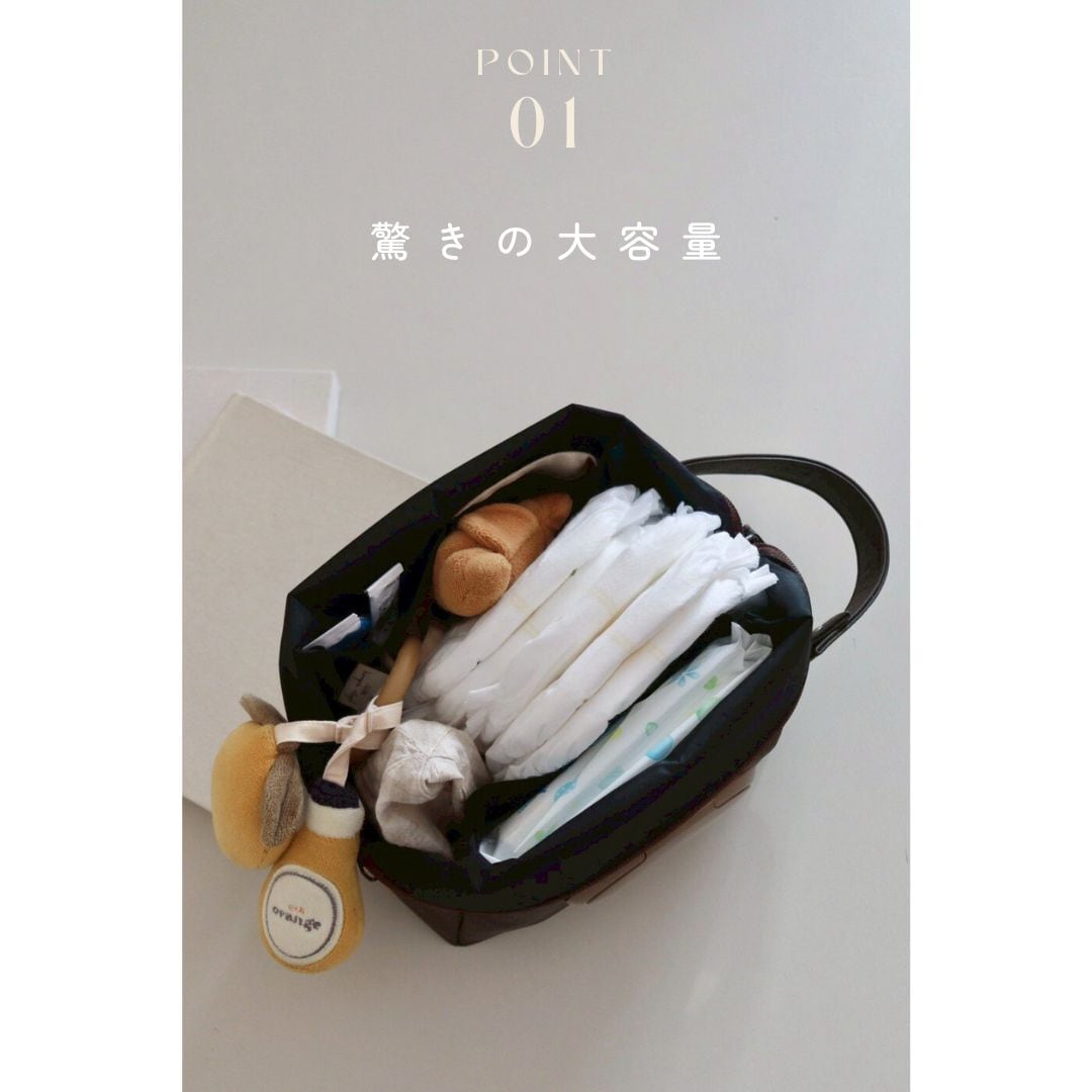 化粧品や充電器セット、おむつ・お着替え・スタイ…などたっぷり収納OK!