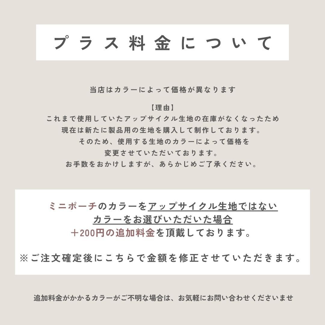 廃棄される生地をアップサイクルしていることとハンドメイドということを十分ご理解いただきご購入ください。配送中についたシワや凹みもご返品の対象外となります。万が一不備があった場合は商品到着後8日以内にご連絡くだされば事実確認の上で至急対応させていただきます。また、お客さまのご都合による交換等の際には、往復の送料と事務手数料のご負担をお願いしております。あらかじめご了承ください。