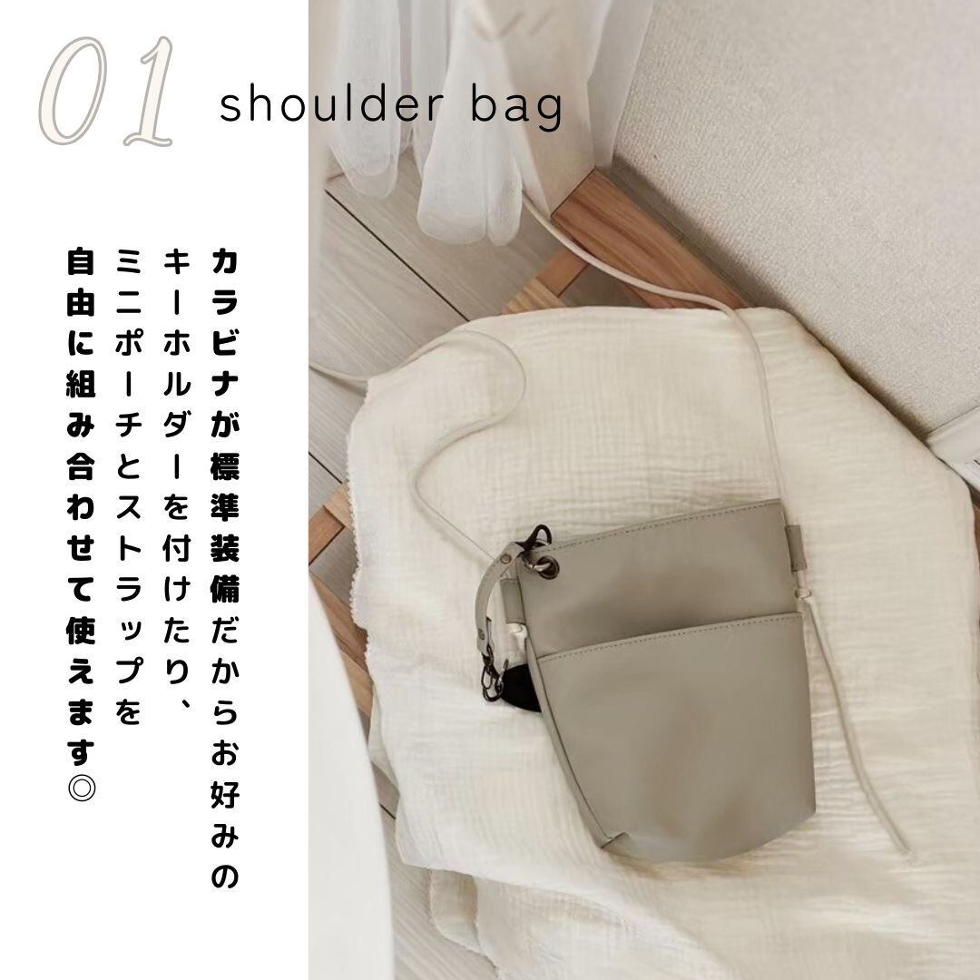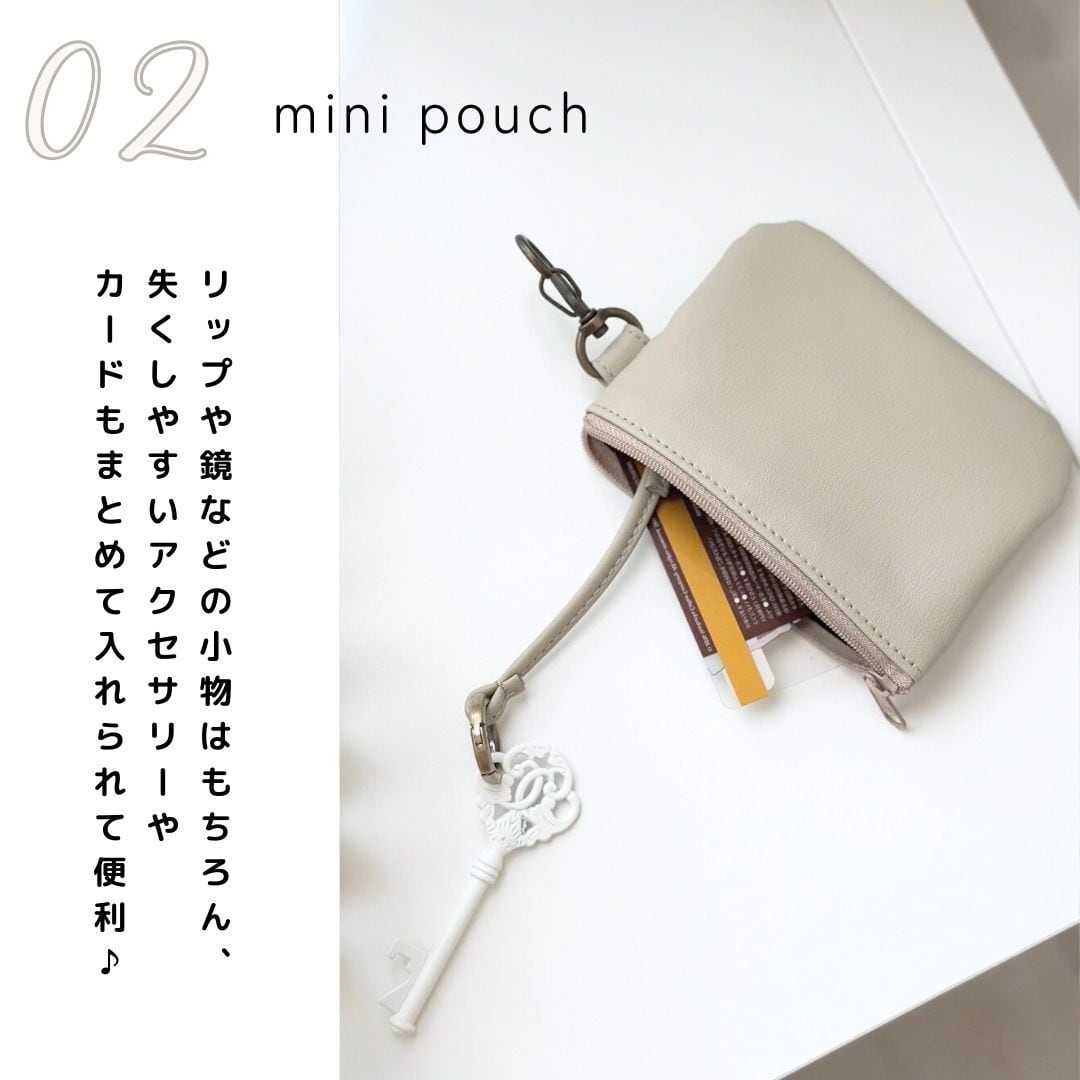 ミニバッグ+ポーチ+ストラップの3点セット。