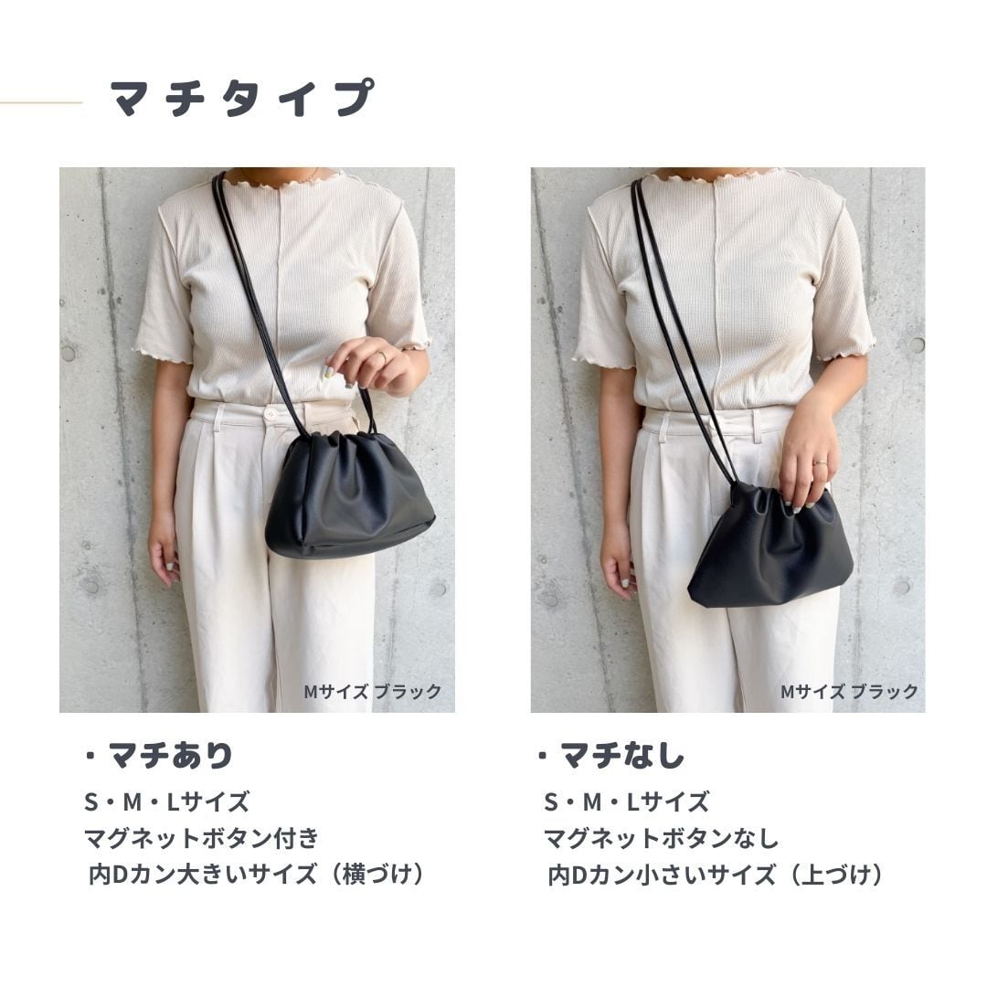マチなし:19.0cm×28.0cm(Dカン小さいサイズ/内ポケット付き)