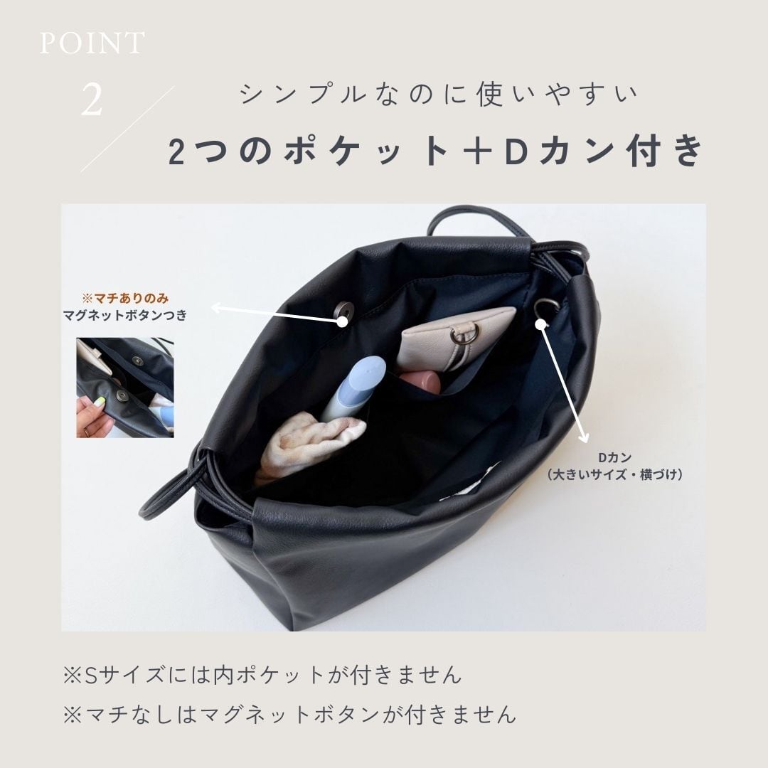 マチあり:19.0cm×28.0cm×8.0cm(内ポケット付き/マグネットボタン付き)