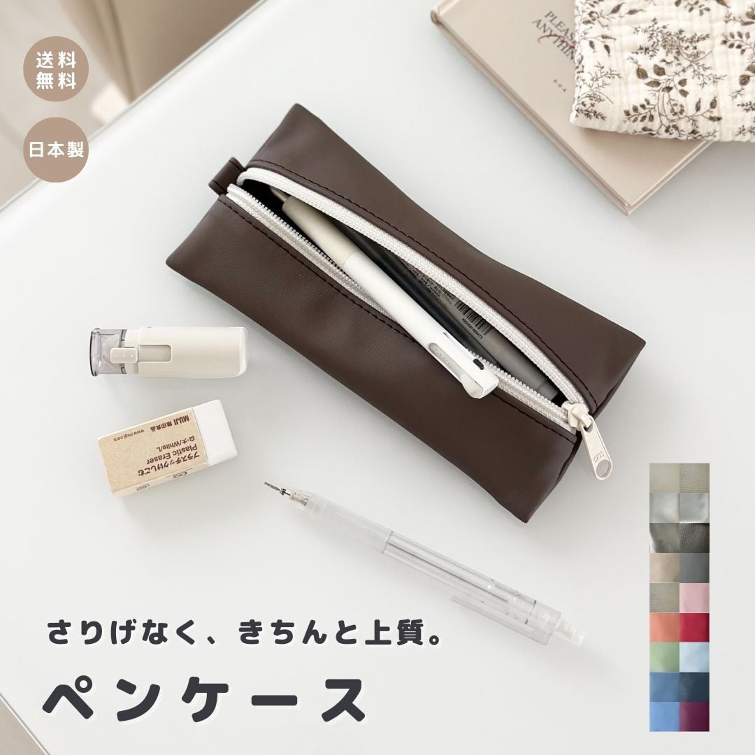 ペンや小物をすっきり収納できるペンケース。