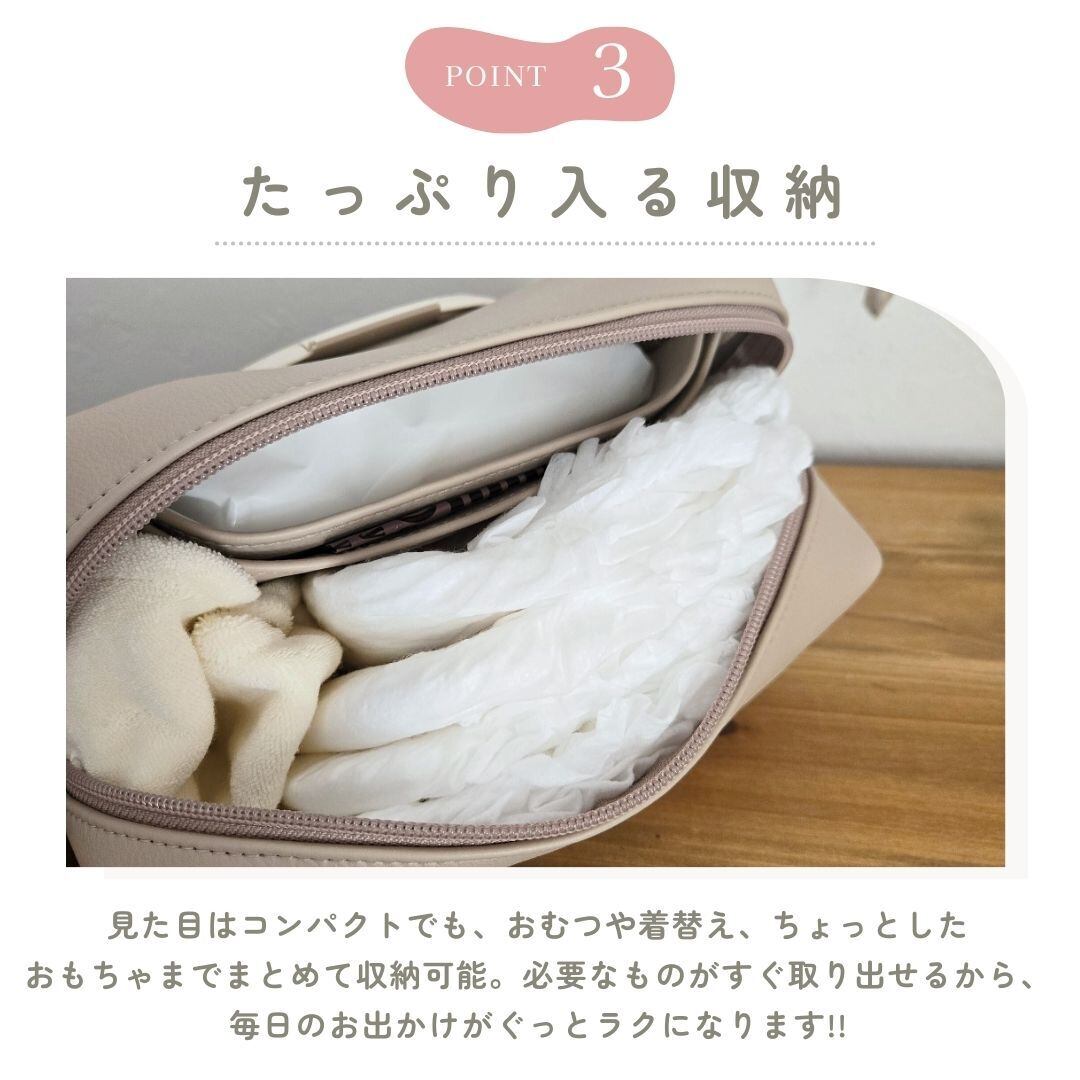 おしりふき・おむつ・着替えなど、つい増えがちな持ち物もひとまとめに。