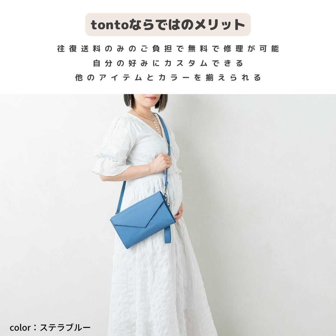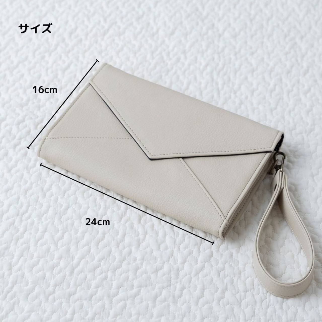 財布機能を備え、クラッチタイプとショルダーバッグの2WAY仕様。