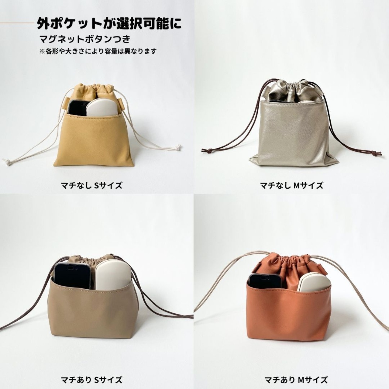 マチあり S H:18cm×W:16cm / M H:20cm×W18cm