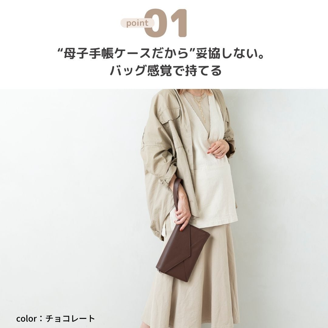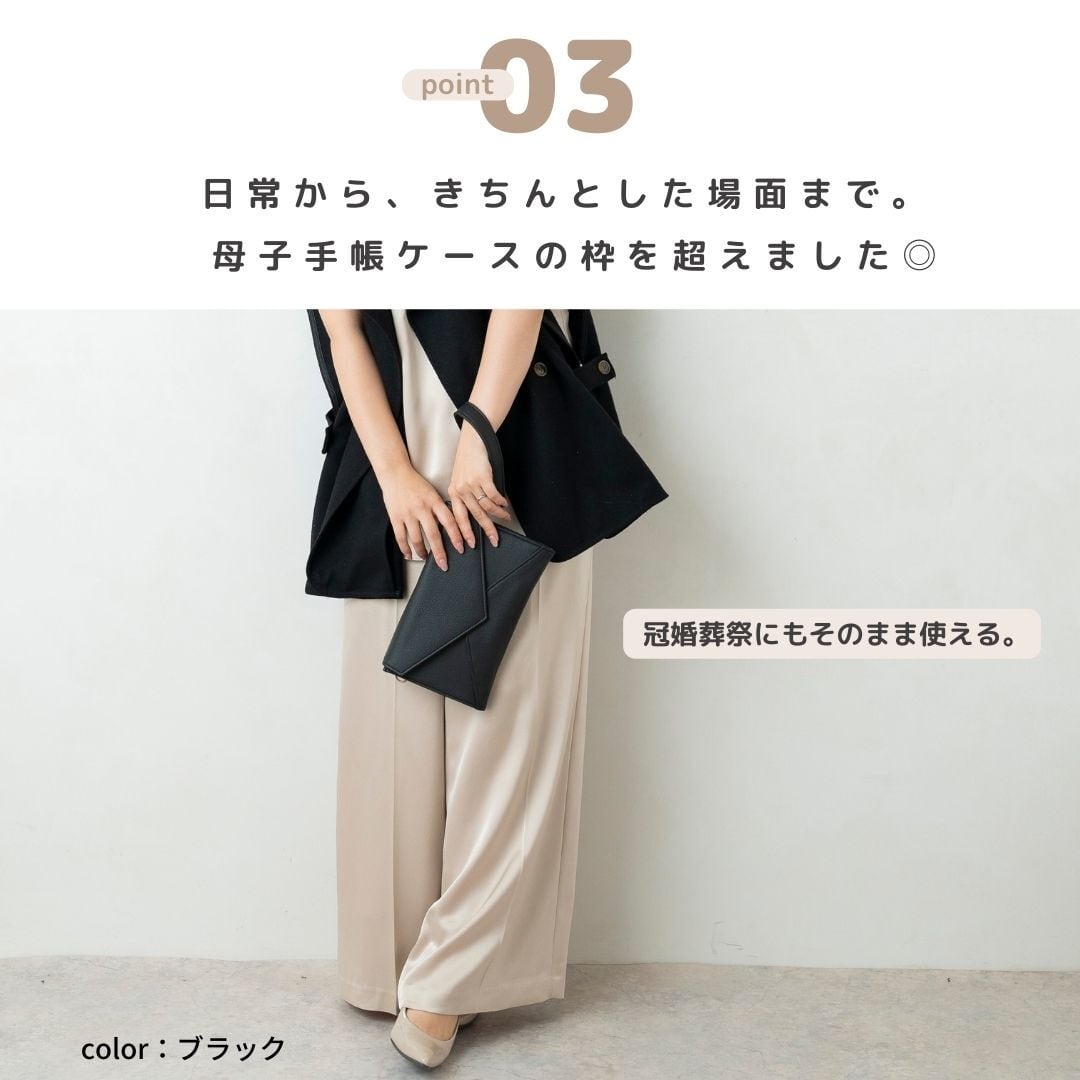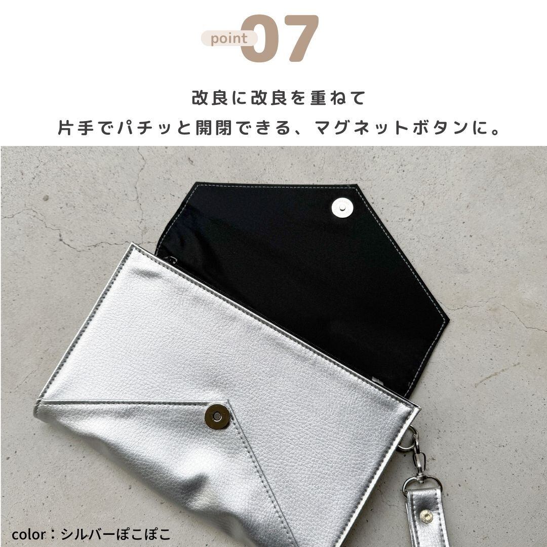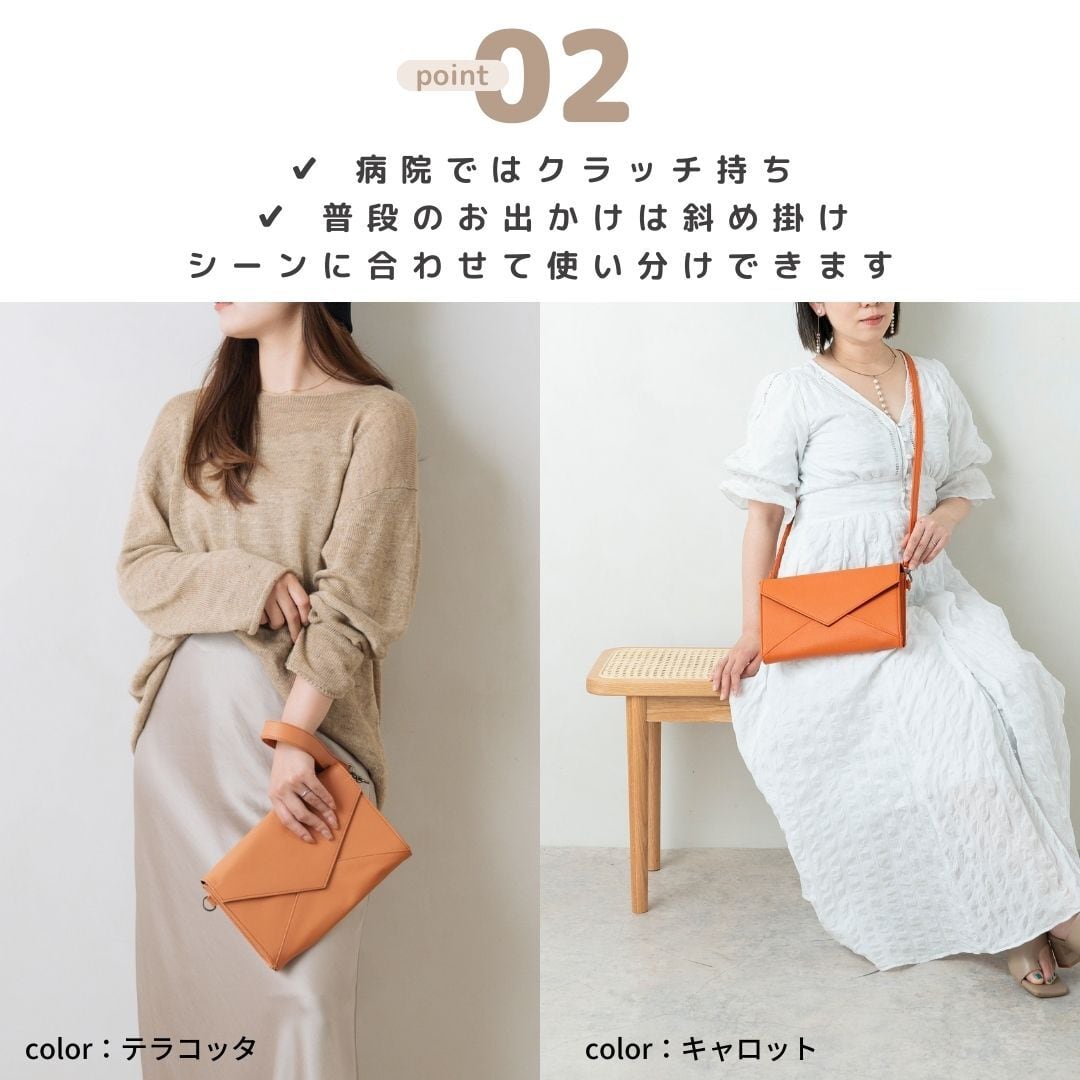 財布機能を備え、クラッチタイプとショルダーバッグの2WAY仕様。