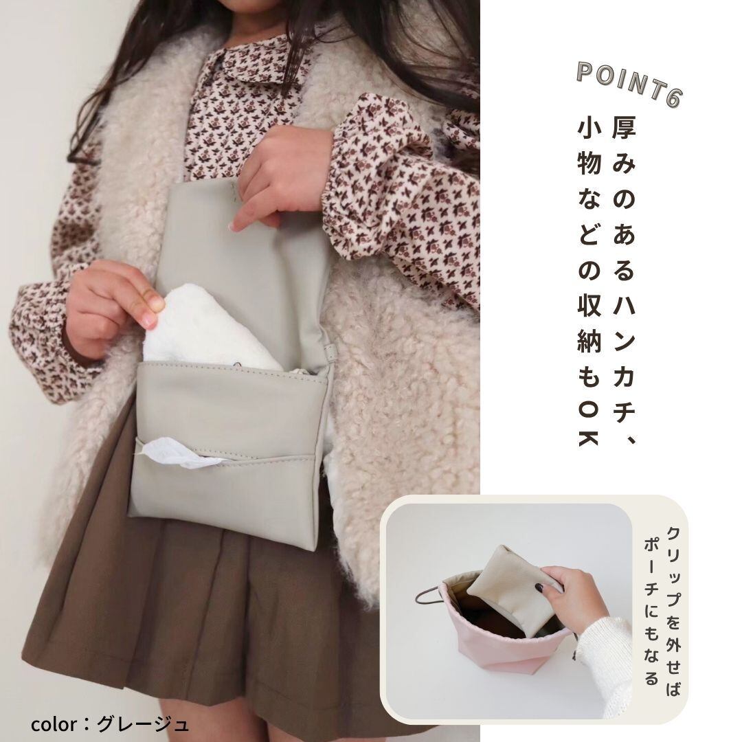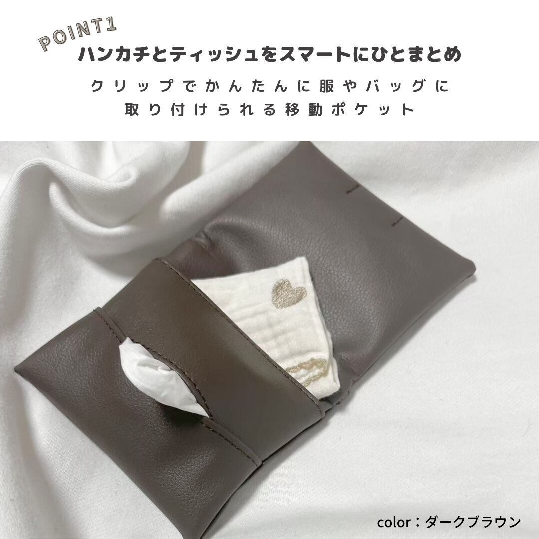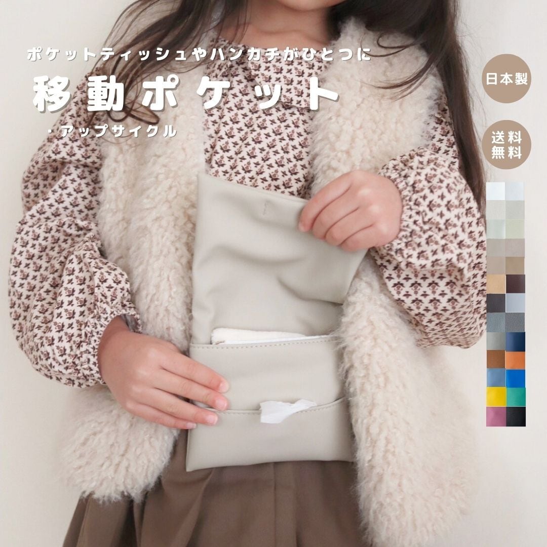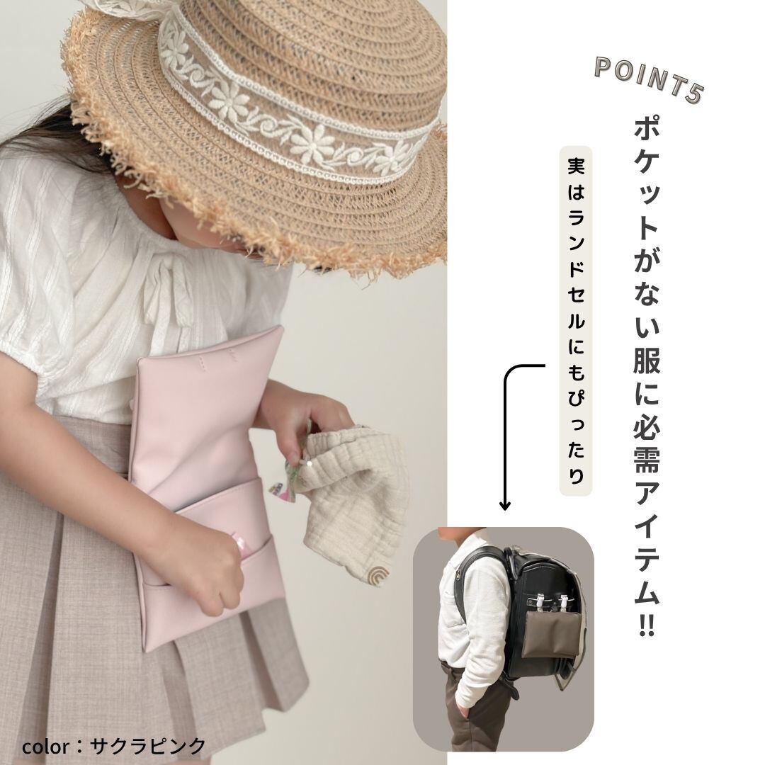 ポケットの中でクシャクシャになりがちなティッシュをしまえる、ティッシュ用ポケット付。最後の1枚まで綺麗にお使いいただけます。