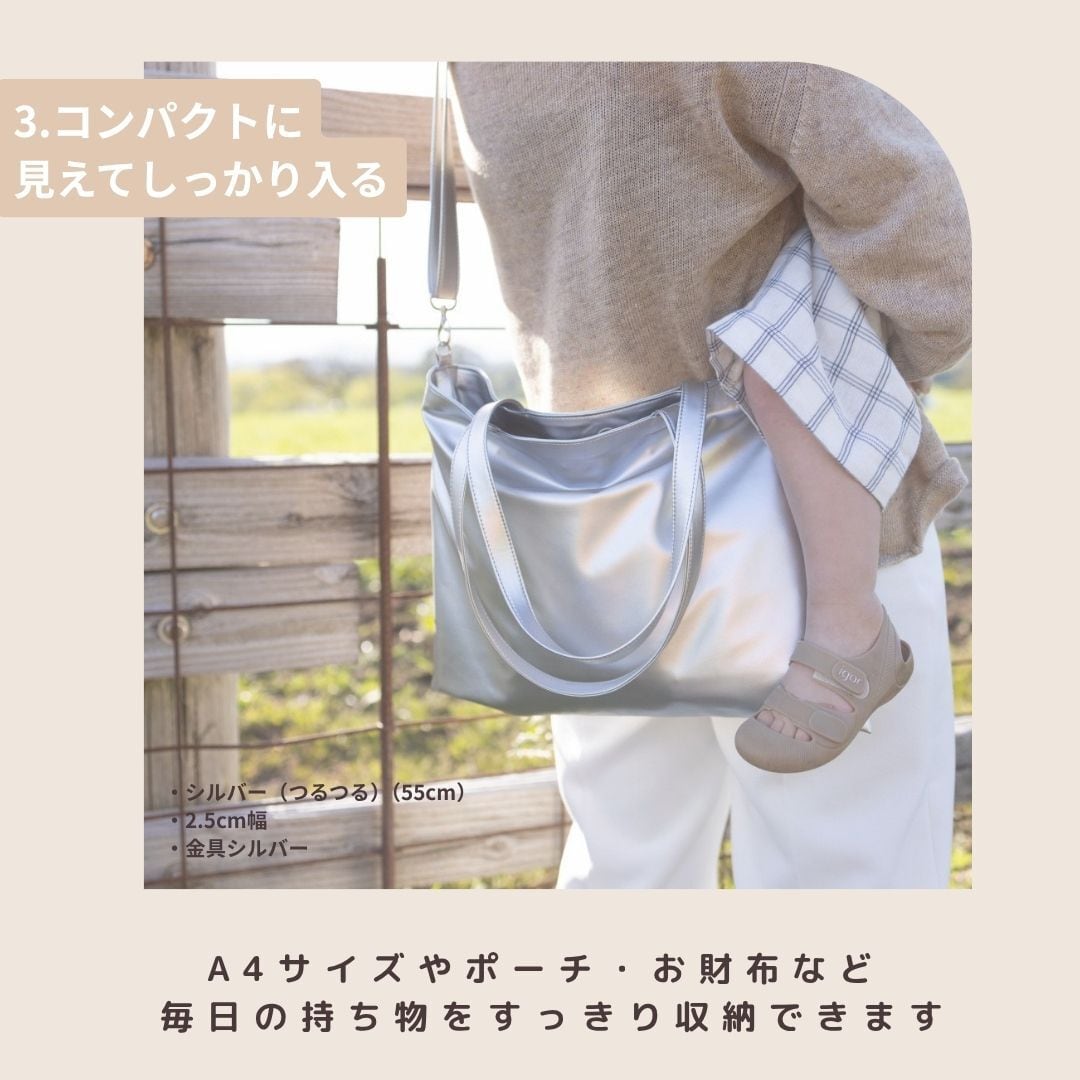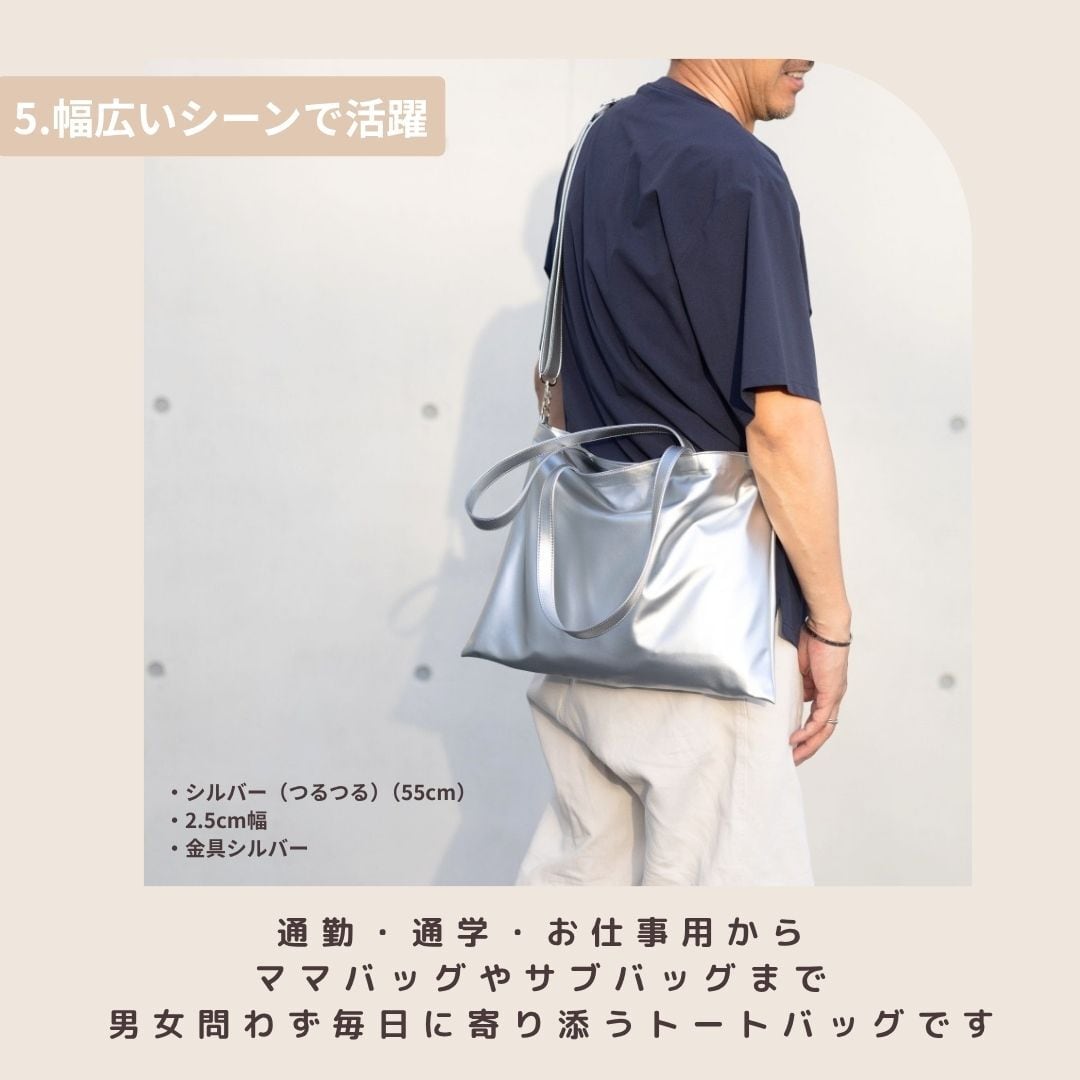 オフィスカジュアルからセットアップスタイルまで幅広いシーンで活躍すること間違いなし。A4ファイルや雑誌、パソコン等の荷物が楽々収納できる使いやすいサイズ感。